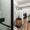 Un bagno moderno e funzionale, preceduto da un pratico antibagno, dotato di box doccia, set di cortesia e asciugamani freschi.