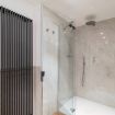 Un bagno moderno e funzionale, preceduto da un pratico antibagno, dotato di box doccia, set di cortesia e asciugamani freschi.