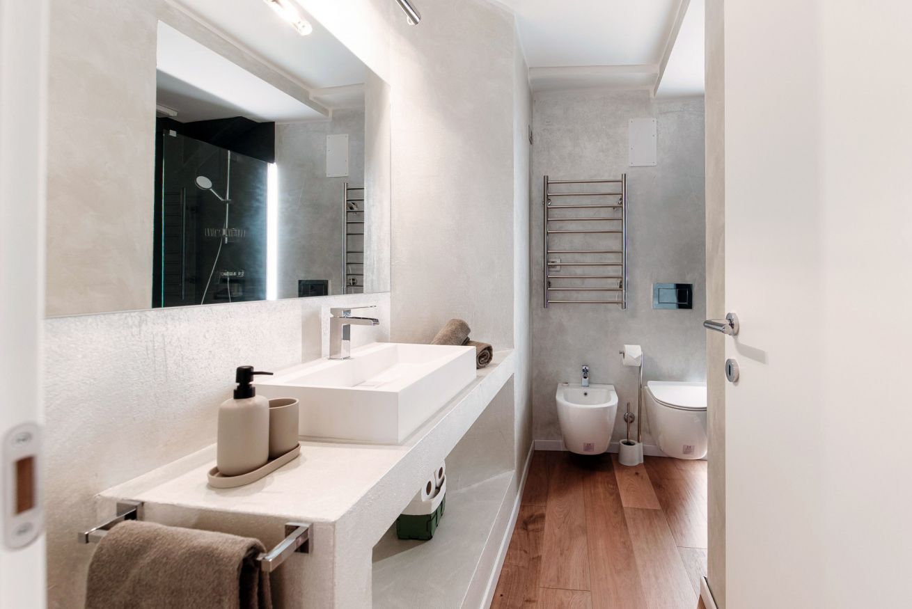 Bagno completo, moderno e funzionale, dotato di seti di cortesia e asciugamani freschi.