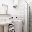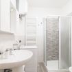 Un bagno moderno e funzionale, dotato di box doccia, set di cortesia e asciugamani freschi.
