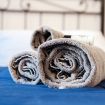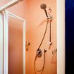 Un bagno moderno e funzionale, dotato di box doccia, set di cortesia e asciugamani freschi.