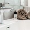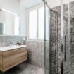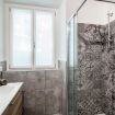 Un bagno moderno e funzionale, preceduto da un pratico antibagno, dotato di box doccia, set di cortesia e asciugamani freschi.