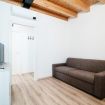 Un soggiorno accogliente e luminoso, con accesso diretto al terrazzino privato, ideale per rilassarsi all’aria aperta.