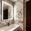 Bagno completo accogliente e funzionale con spaziosa doccia di dirimpetto rispetto alla sauna completo di set di cortesia e asciugamani freschi.