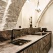 Cucina vivibile minimal ma funzionale, fornita di piano cottura ad induzione, macchina del caffè, frigorifero e lavastoviglie.