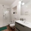 Un bagno moderno e funzionale, preceduto da un pratico antibagno, dotato di box doccia, set di cortesia e asciugamani freschi.