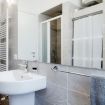 Un bagno moderno e funzionale, preceduto da un pratico antibagno, dotato di box doccia, set di cortesia e asciugamani freschi.